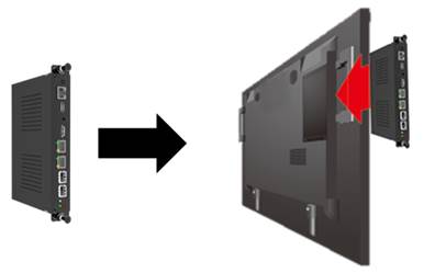 注:將設備的通風口朝外,OPS口對準顯示屏OPS接口位置,垂直將設備插入顯示屏。